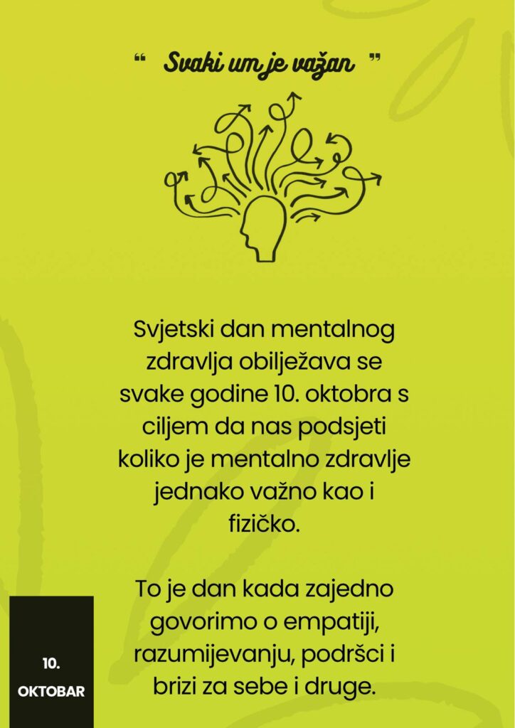 #DanMentalnogZdravlja#ZelenaVrpca#BrigaOSeBi#Empatija#Podrška#ZdravDuhZdravoTijelo#ŠkolaKaoZajednica#OktobarMentalnogZdravlja