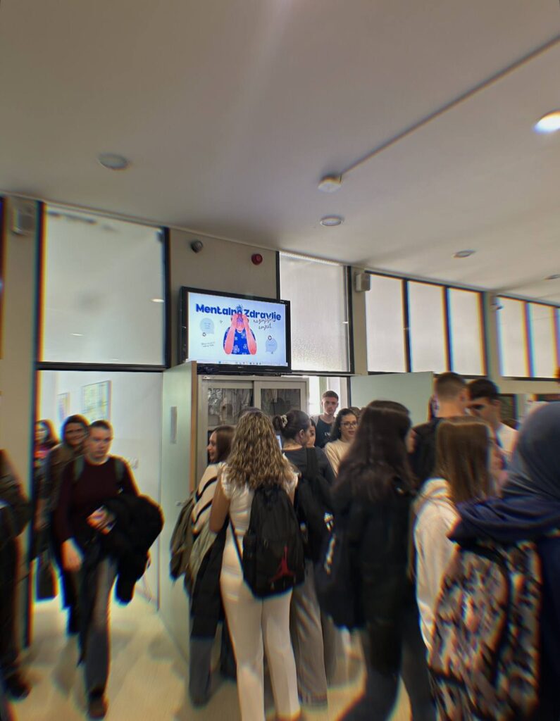 u holu škole postavljena je prezentacija o mentalnom zdravlju, pa su učenici tokom cijelog dana mogli dobiti korisne informacije, savjete i podsjetnike kako da čuvaju svoje mentalno zdravlje.