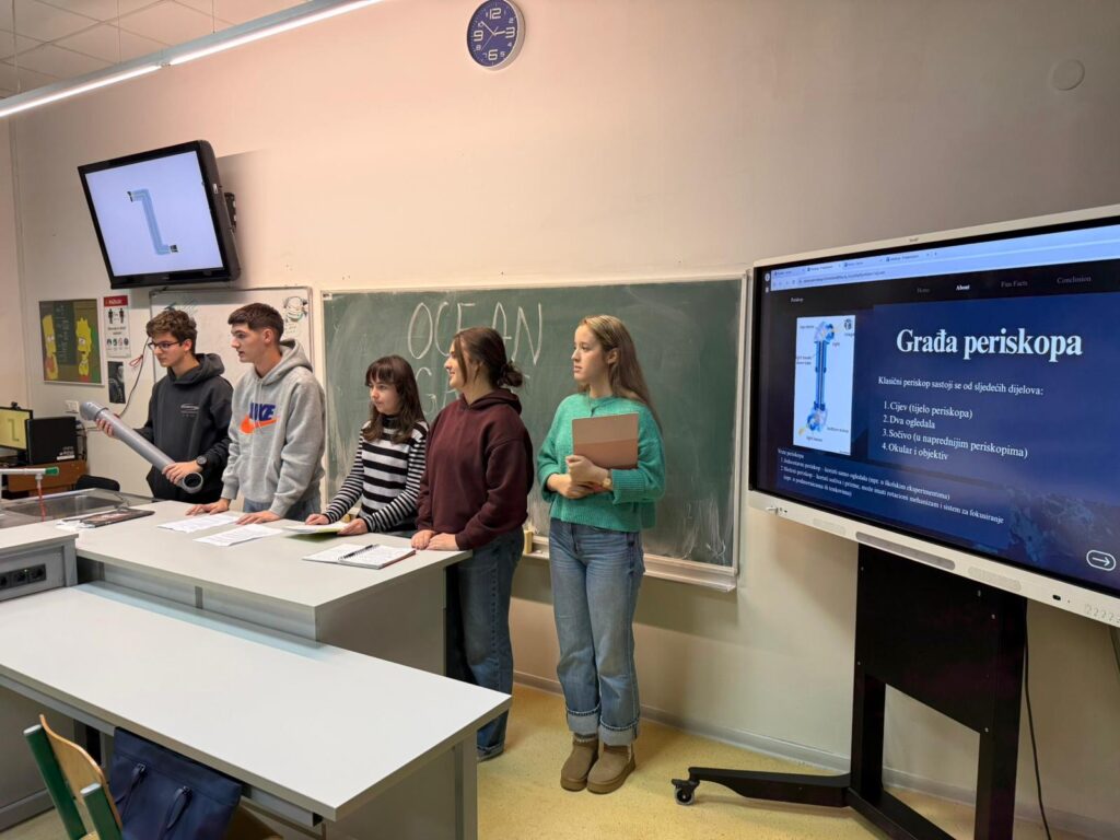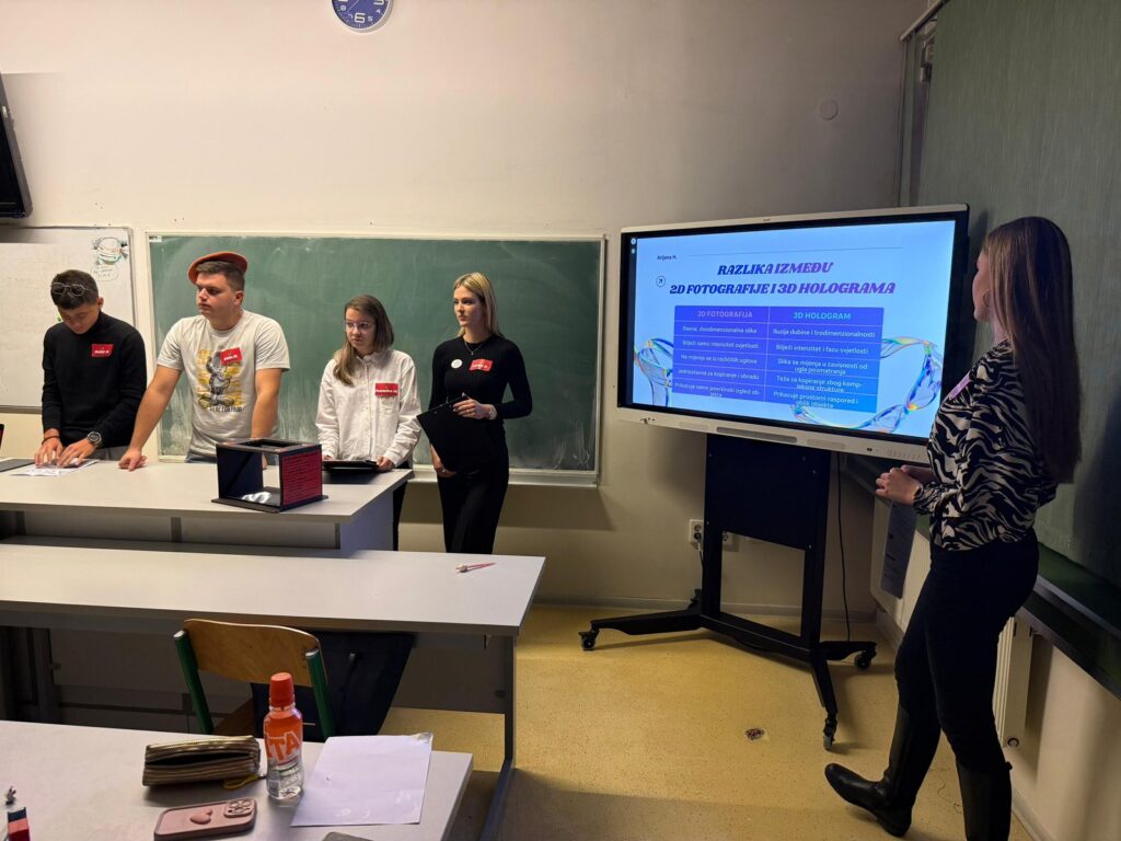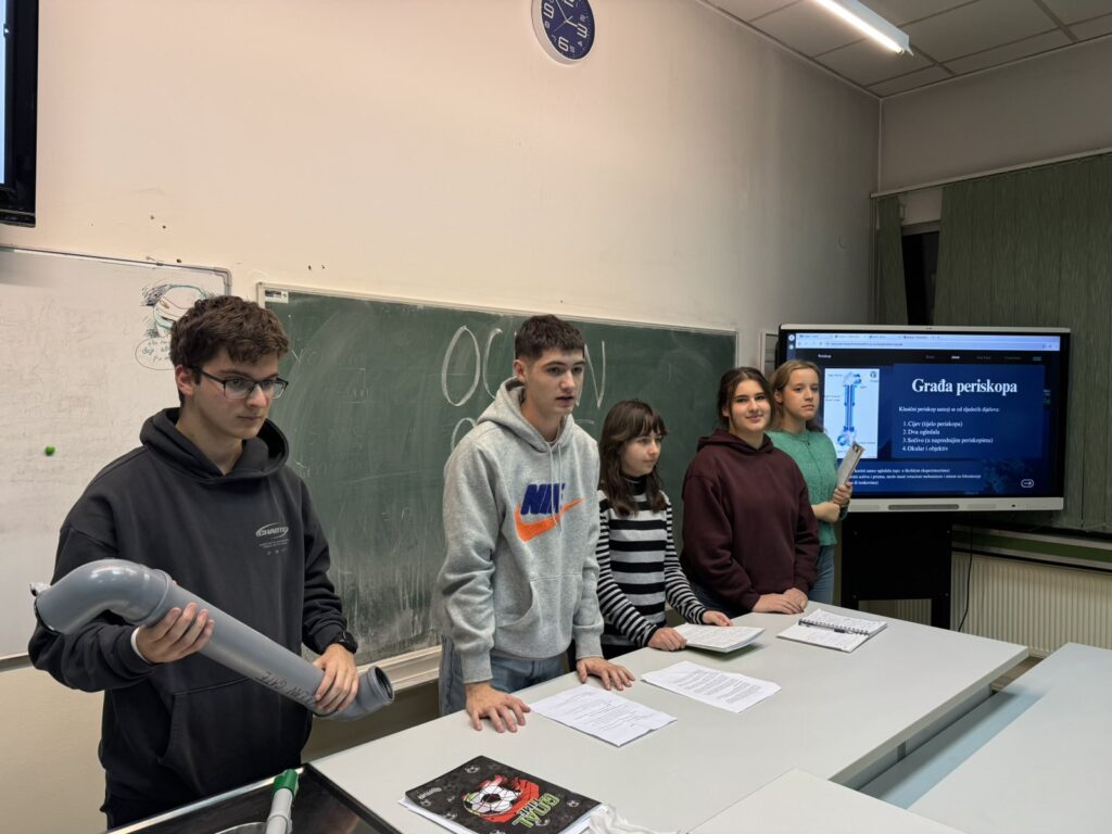 Učenici naše škole, odjeljenja IV1, su 2.12.2025. uz podršku i pomoć profesorice Amne Mahmutović realizirali niz zanimljivih projekata iz oblasti optike. U sklopu časa fizike izradili su teleskop, spektroskop, periskop i hologram, te na praktičan način primijenili stečeno znanje.