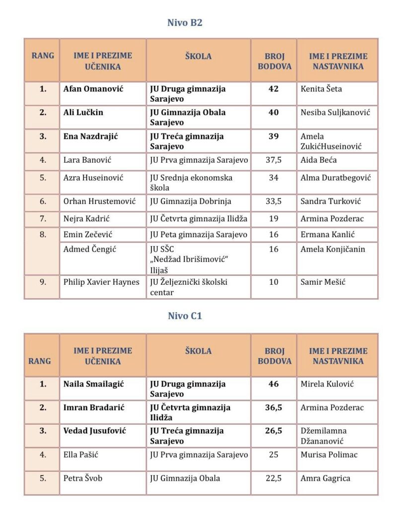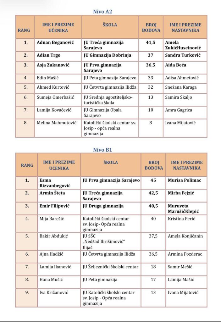 na nivou A2, a Orhan Hrustemović 6.mjesto na nivou B2