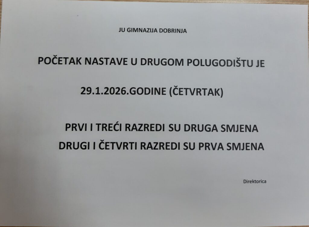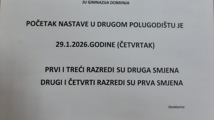 • POČETAK NASTAVE U DRUGOM POLUGODIŠTU jan 26, 2026