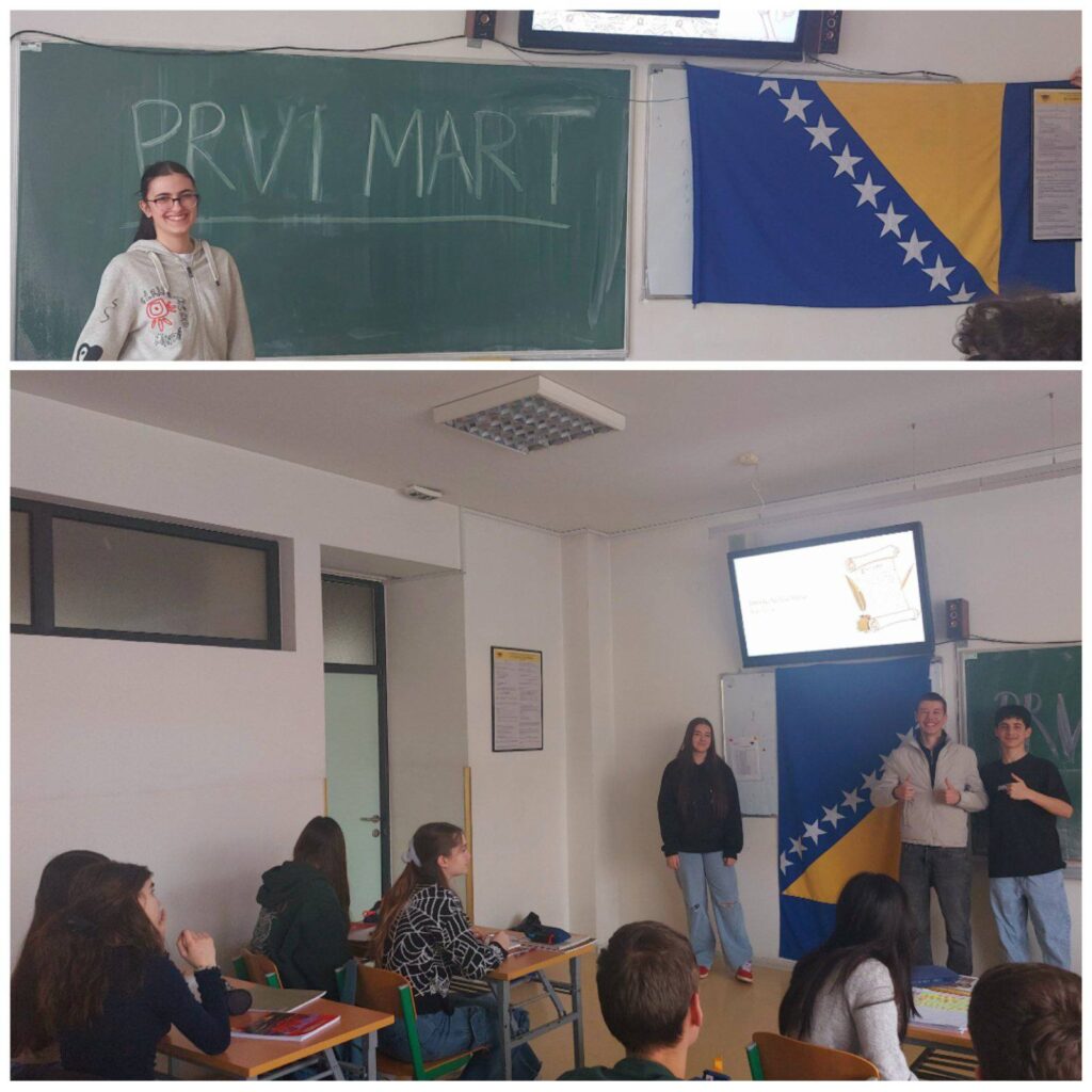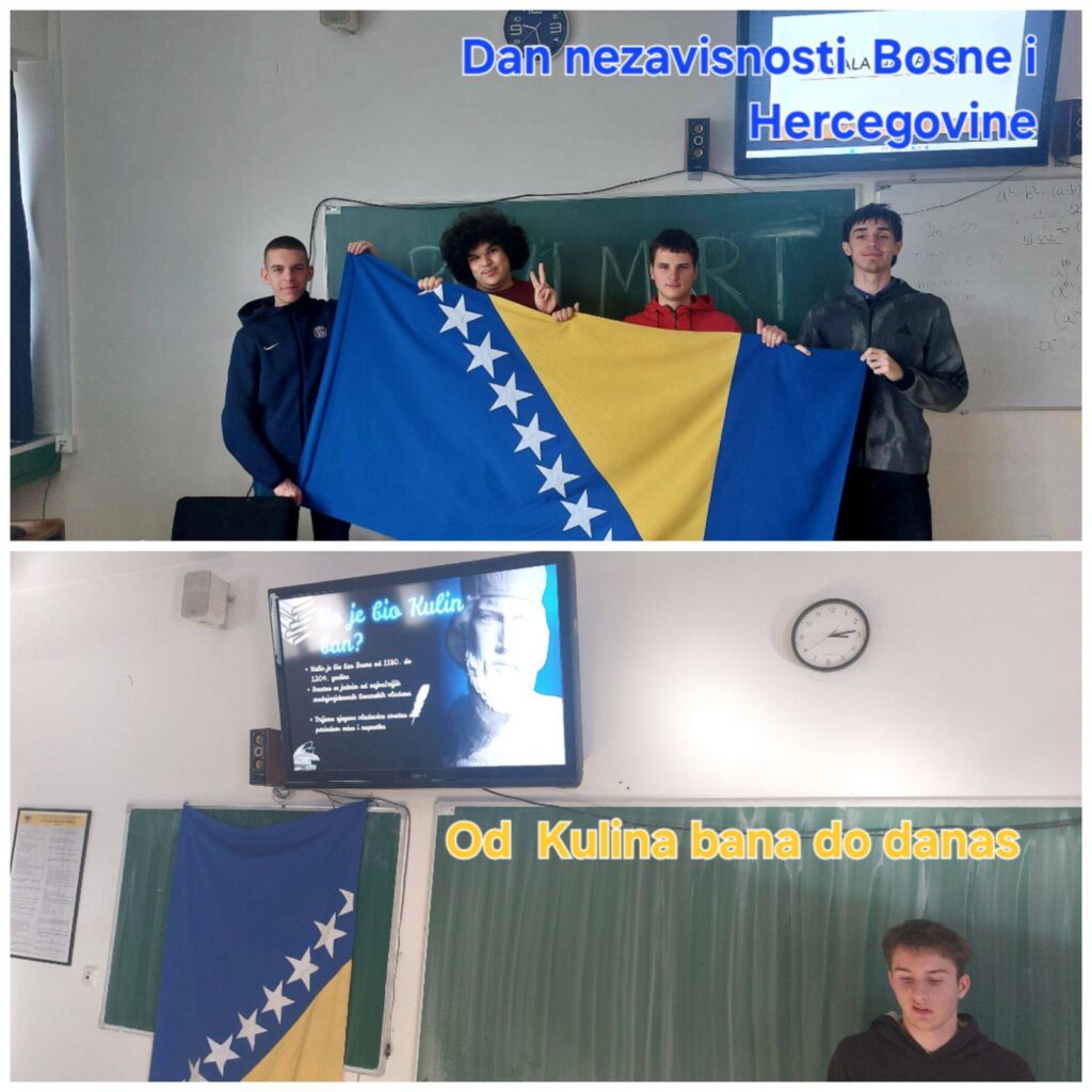 Povodom obilježavanja Dana nezavisnosti Bosne i Hercegovine 36 ucenika prvih i drugih razreda (I-1, I-4, I-5 i II-1) sa profesoricom Timkom Pašić-Alagić tokom mjeseca februaru istražili su i prezentirali u svojim odjeljenjima tema iz srednjovjekovne Bosne odnosno spomenike i ličnosti koji su svjedoci izgradnje državnosti i puta nezavisnosti BiH.