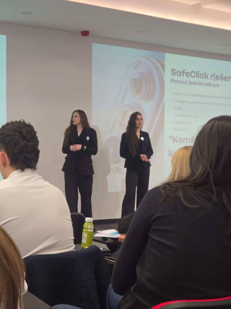 Na takmičenju su predstavile svoju inovativnu ideju “SafeClick” – pametni sigurnosni privjesak za hitne situacije, koja je privukla pažnju svojom praktičnošću i društvenom korisnošću.