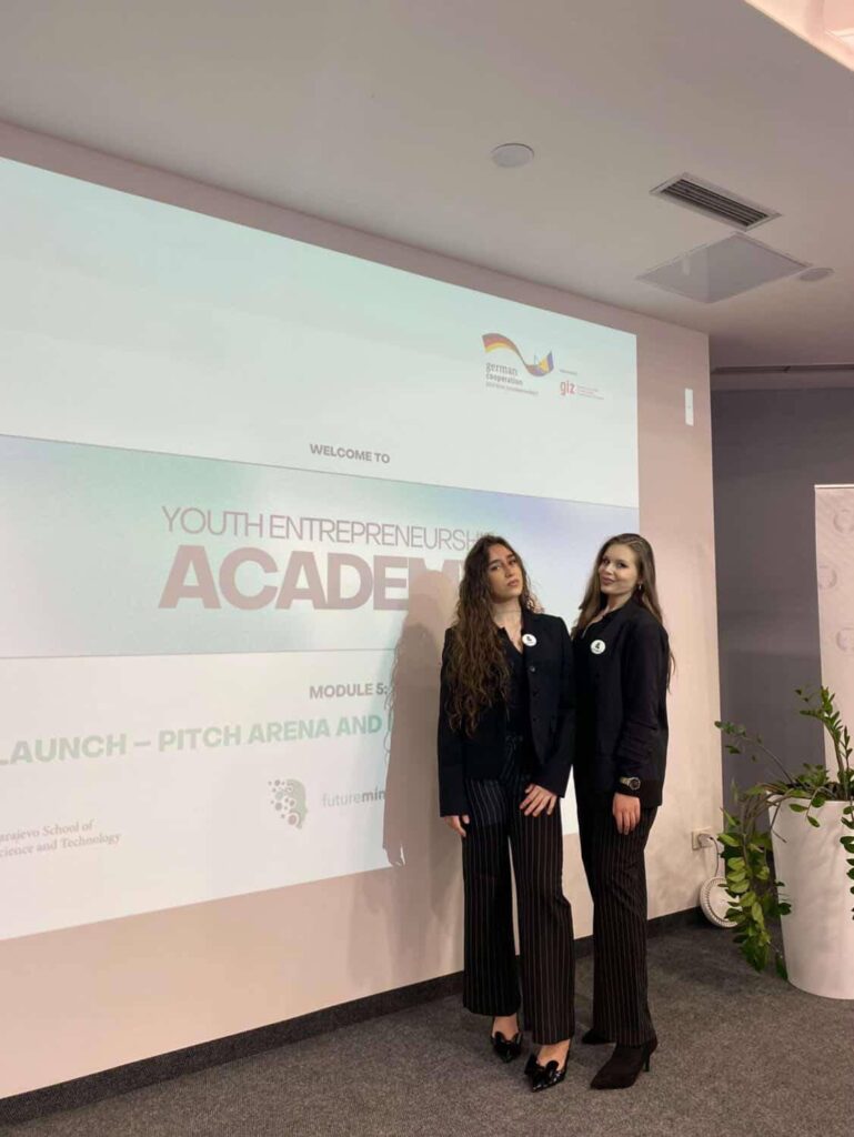 Naše učenice Balagić Sara (II-5), Hadžiahmetović Ajša (II-5) i Jetulahović Farah (II-4) učestvovale su na takmičenju održanom na SSST (Sarajevo School of Science and Technology) fakultetu u okviru Akademije za mlade preduzetnike (Youth Entrepreneurship Academy), predstavljajući našu školu.