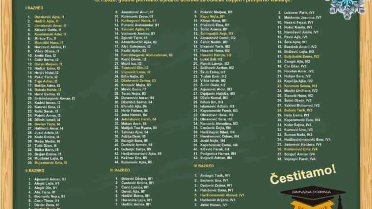 U JU Gimnazija Dobrinja održan je tradicionalni Novogodišnji humanitarni koncert. Pod geslom „Naše je samo ono što damo“, ugostili smo prijatelje iz Udruženja „Oaza“ i pjesmom, plesom te lijepom riječju zaokružili kalendarsku godinu. Program je stihovima otvorio učenik Fejsal Nezirić, a za ovaj dio nastupa zaslužna je Recitatorska sekcija pod vodstvom prof. Dženete Hadžović. Prazničnu […]