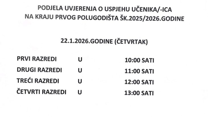 Dana, 18.12.2025. godine u amfiteatru JU Gimnazija Dobrinja uspješno je realizovano informativno – edukativno predavanje pod nazivom „Prevencija rizičnih ponašanja i jačanje sigurnosne kulture među mladima“, koje je održao viši inspektor Adnan Hadžiahmetović. Predavanju su prisustvovali učenici drugih razreda, koji su kroz interaktivno i sadržajno izlaganje imali priliku da unaprijede svoja znanja i vještine u […]