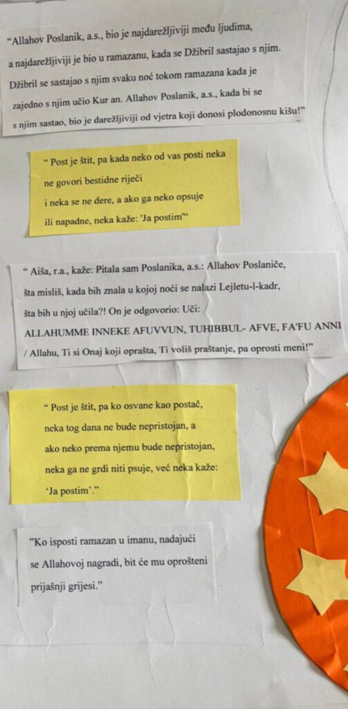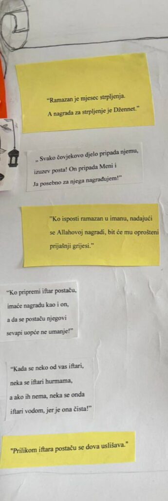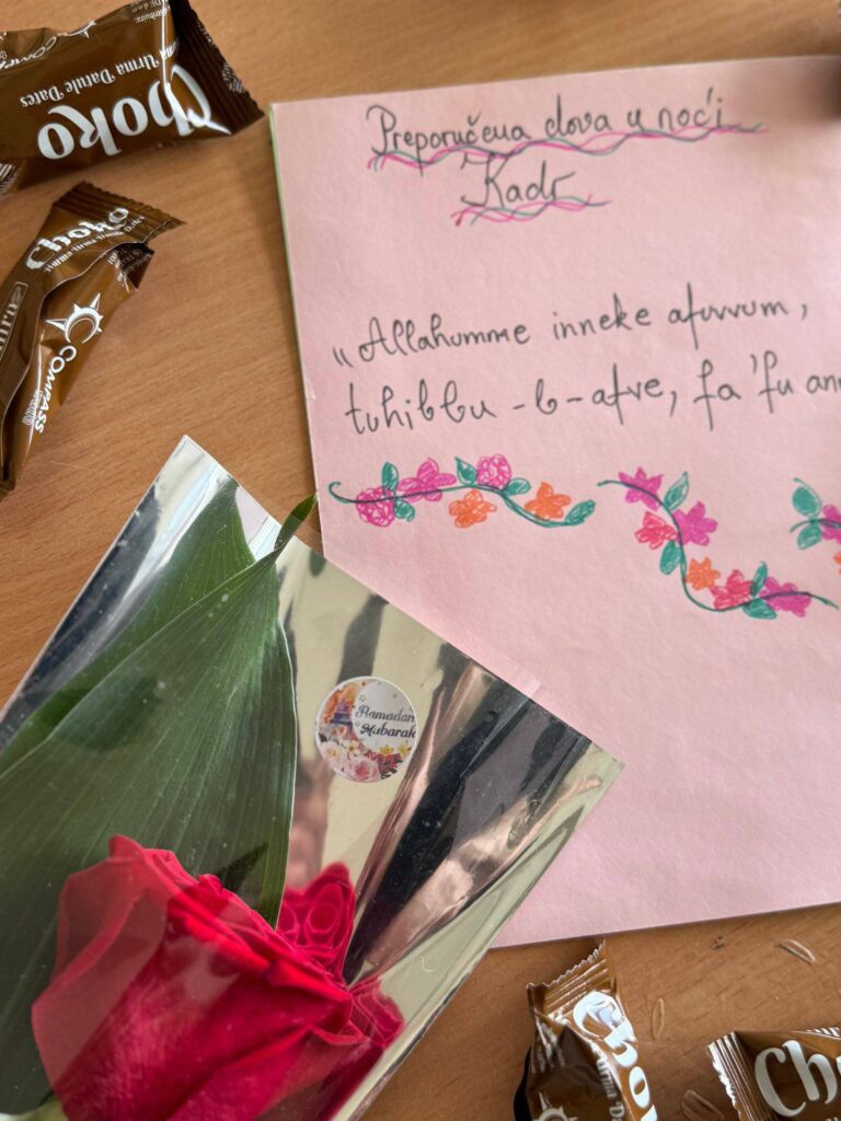 Projektnom aktivnošću kroz istraživanje i kreativne radionice učenici naše škole razvijaju razumijevanje duhovne i društvene dimenzije ramazana, njeguju vrijednosti solidarnosti i empatije, te vlastitim angažmanom doprinose izgradnji pozitivne školske zajednice.