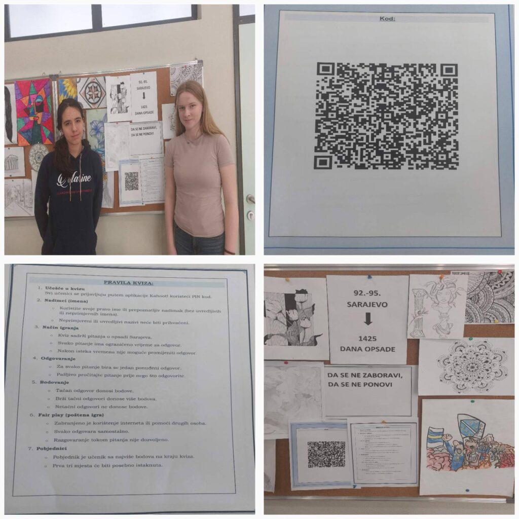 Učenice Zana Dizdar i Tajra Zgonić posebno su za učenike JU Gimnazija Dobrinja pripremile kviz “Opsada Sarajeva 1992.-1995” kojem su učenici pristupili putem QR koda. Najuspješnija u kvizu znanja bila je Zejna Kulenović.