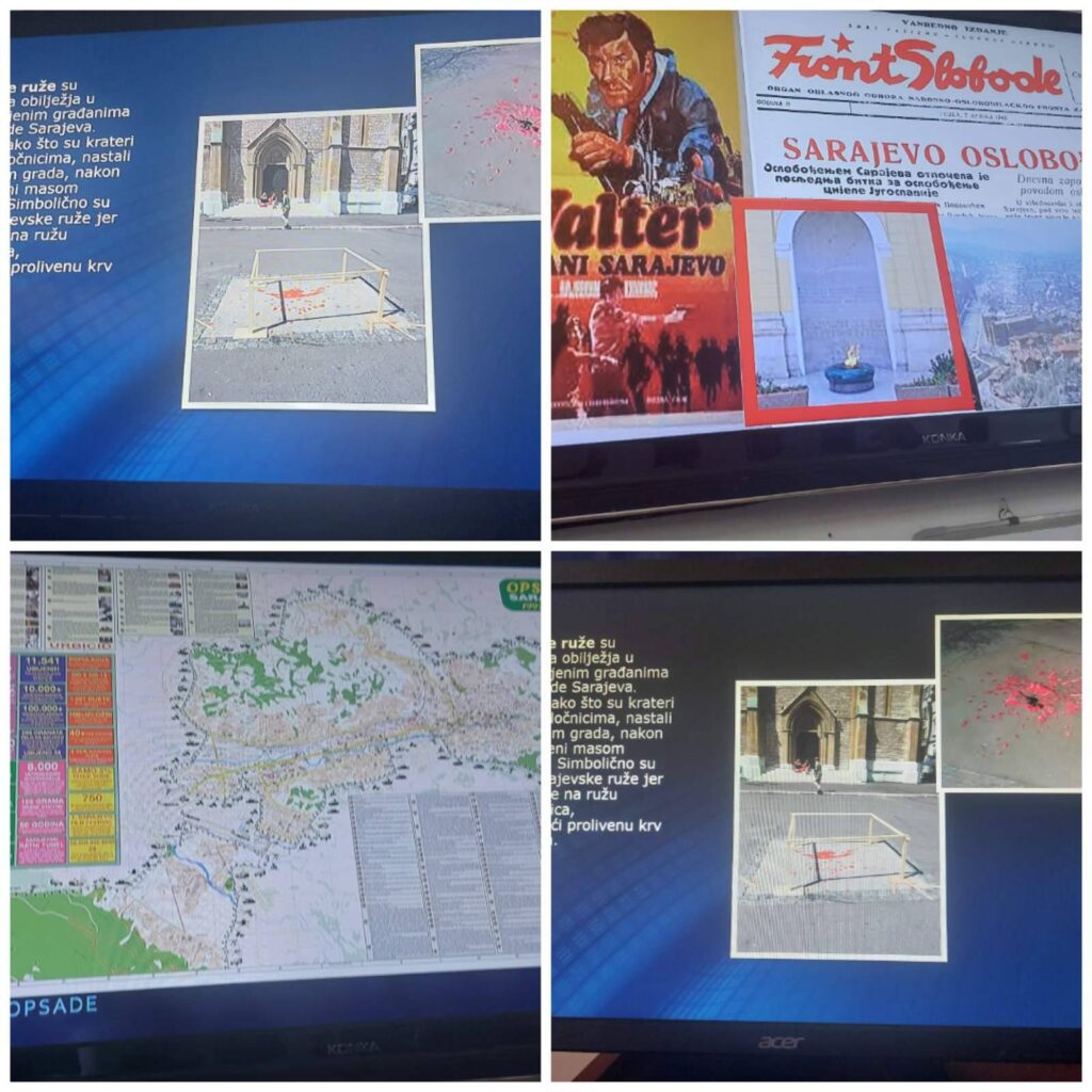 Učenici II-1 i I-5 sa profesoricom Timkom Pašić-Alagić održali su historijski čas posvećen ovim događajima. Radeći u grupama uz prezentacije i štampani materijal, koji je pripremila nastavnica, učenici su selektivno koristili AI alate za istraživanje tema: ” Antifašistička borba”, Multireligijski karakter Sarajeva”, “Opsada Sarajeva” i Dobrinja-Opsada u opsadi”.