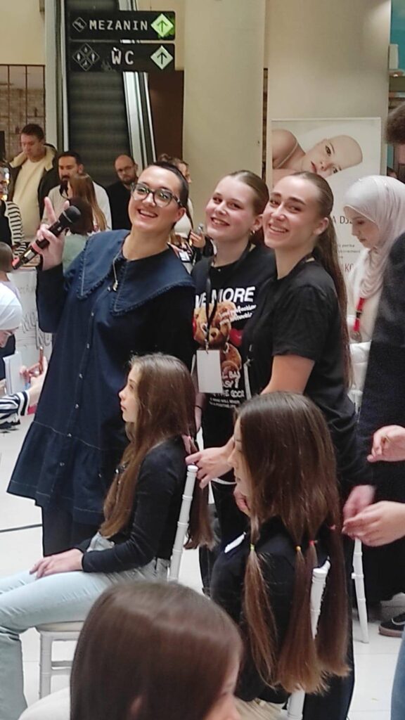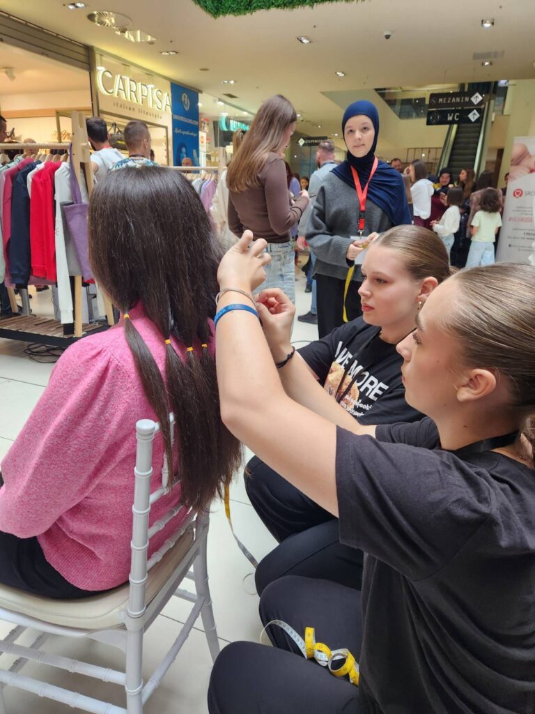 Učenici Vijeća učenika naše škole — Adel Koudemati (I-1), Ajša Hadžiahmetović (II-5), Farah Jetulahović (II-4), Deni Adžija (II-5) i Esma Škulj (III-2) — učestvovali su 8. novembra u humanitarnoj akciji “Moja kosa – tvoja kosa” održanoj u Importanne Centru.