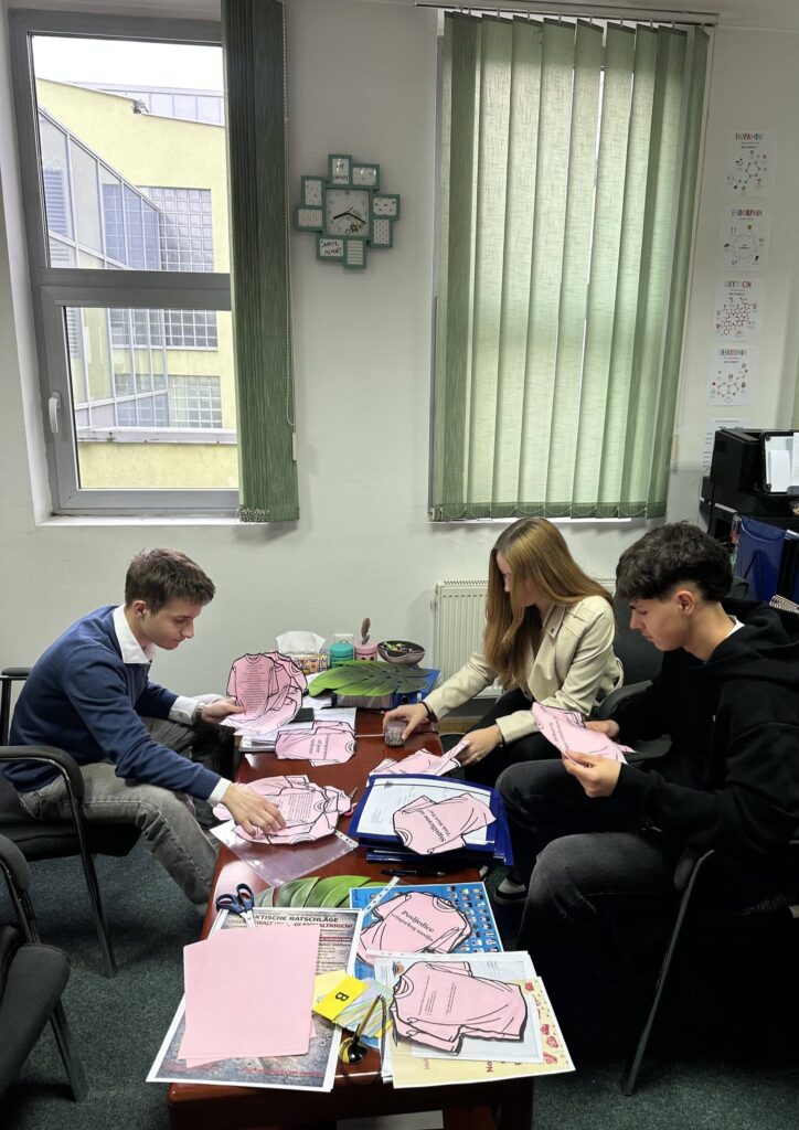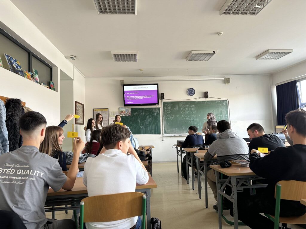 U saradnji sa profesorima stranih jezika – Irfanom Dupovcem, Sandrom Turković, Vildanom Bulić i Merisom Peljto – učenici su radili na prevodu edukativno-promotivnih materijala na engleski, njemački i turski jezik. Kroz ovaj proces dodatno su razvijali vokabular iz oblasti vršnjačkog nasilja, nenasilne komunikacije i emocija, unapređivali jezičke kompetencije te učili kako stručne i osjetljive teme izraziti na stranim jezicima na primjeren i precizan način.
