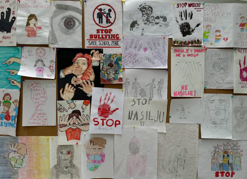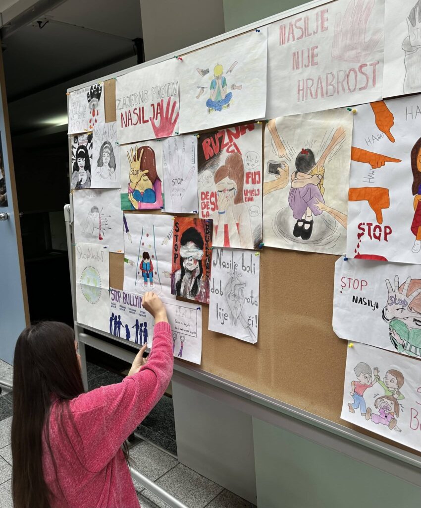 Uz profesoricu Bulić, učenici četvrtog razreda izradili su i tematske plakate na njemačkom jeziku koji su postavljeni u školskom holu, čime su vizuelno i simbolično zaokružene poruke prevencije nasilja.