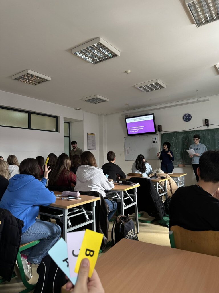 Poseban akcenat stavljen je na vršnjačke edukacije koje su realizovane u prvim razredima. Uz stručnu pripremu i mentorstvo psihologinje, formirana je grupa učenika – vršnjačkih edukatora – koji su nakon edukacije aktivno učestvovali u provođenju radionica za učenike prvih razreda. Kroz ovaj model rada učenici su prenosili poruke o nenasilju, empatiji i odgovornom reagovanju, doprinoseći jačanju vršnjačke podrške i pozitivne školske klime.